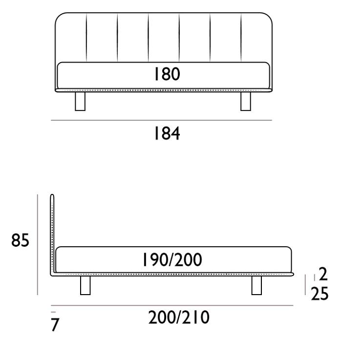 Rozměry: š. 184 cm, h. 210 cm, v. 85 cm