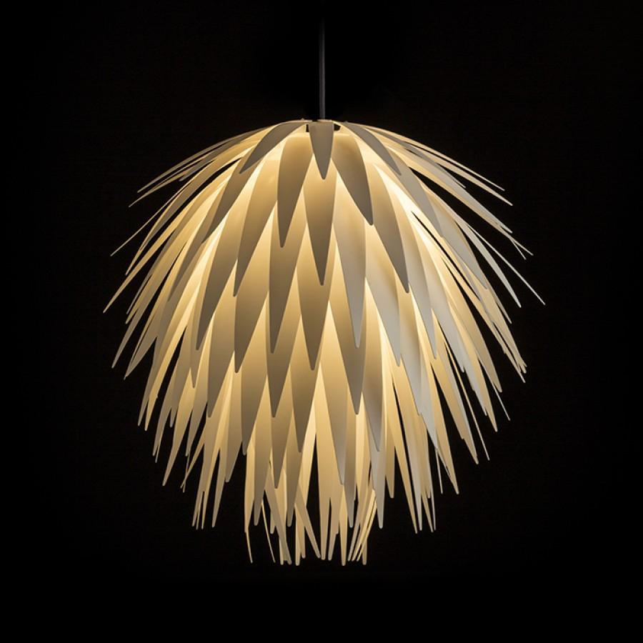 Závěsné dekorativní svítidlo z plastových proužků. Dodáváno v