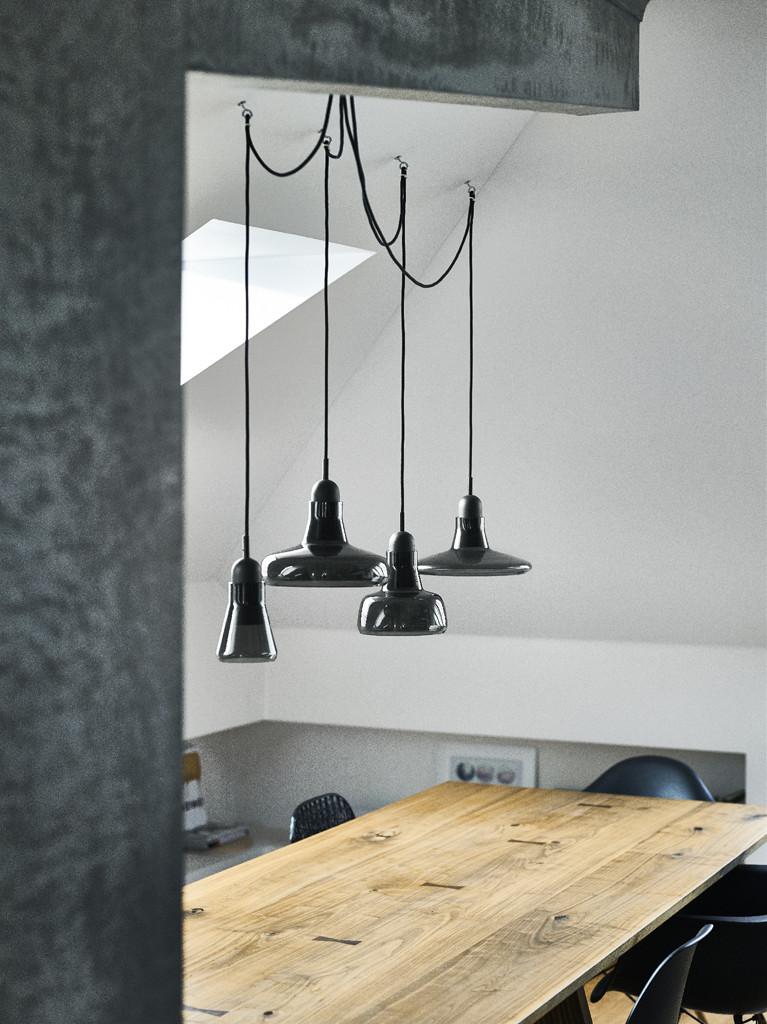 Kolekce Shadows je interpretací oceňovaných a nadčasových francouzských ateliérových lamp, jejichž dědictví svou typologií vzdává hold. Díky propojení ručně foukaného skla, řemeslně zpracovaného dřeva a klasickému tvarosloví vzniká svítidlo nestárnoucí elegance. Kolekce nabízí 4 varianty závěsných svítidel, která plní svou funkci buď samostatně, nebo v setech po více kusech. Jednotlivá svítidla charakterizuje stínidlo z foukaného skla nasazené na ručně opracovanou dřevěnou monturu. Čistotu formy a provedení podtrhuje ukrytý zdroj světla. Kolekce Shadows nejenže je výjimečná širokou škálou barev skel, jejich povrchových úprav i různými druhy dřeva, ale také svou variabilitou, neboť svítidla lze nakombinovat do setu dle požadavků klienta.