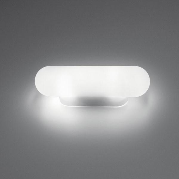 Nástěnné svítidlo Sagitta je vyrobeno z opálového foukaného skla s úchytem z lakovaného kovu.