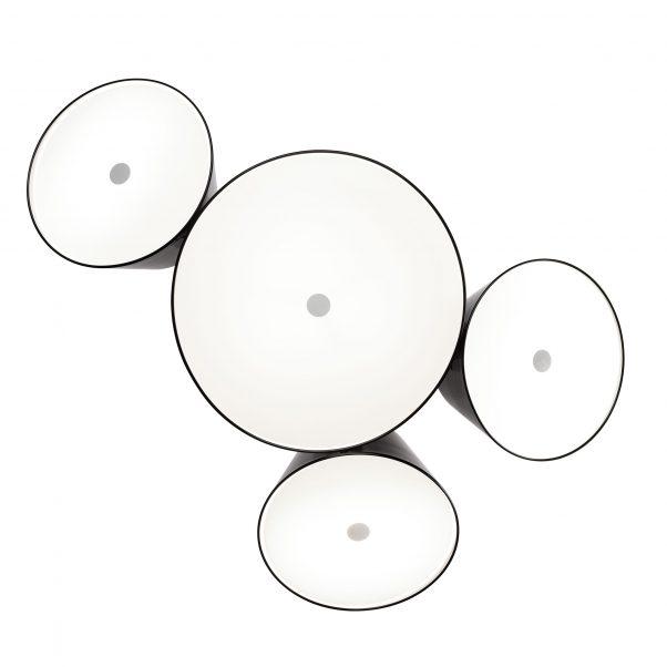 Průměr centrálního svítidla je 35 cm, malého 22 cm. Malá stínidla jsou otočná o 360°.