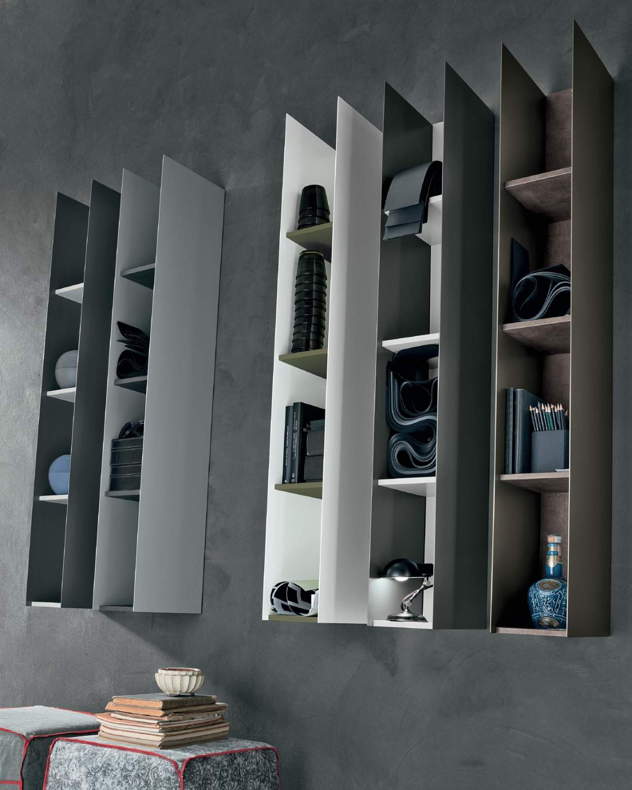 Police Raster se svým minimalistickým designem oživí každý interiér. Používat je můžete samostatně, ale výborně se dají zkombinovat i s dalším nástěnným nábytkem značky Tomasella.