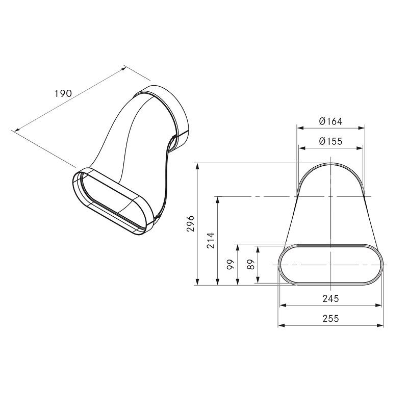 Průchodka z kulatého potrubí na ploché potrubí ofset + 1x těsnění EFD a a1x těsnění ERD