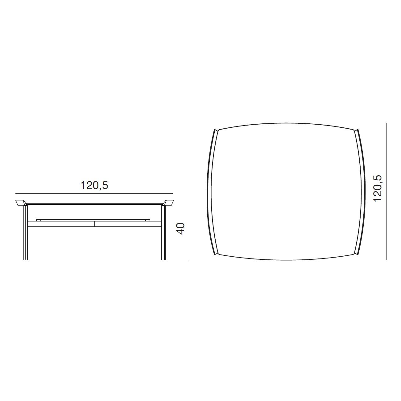 Rozměry: š. 120,5, h. 120,5 cm, v. 40 cm