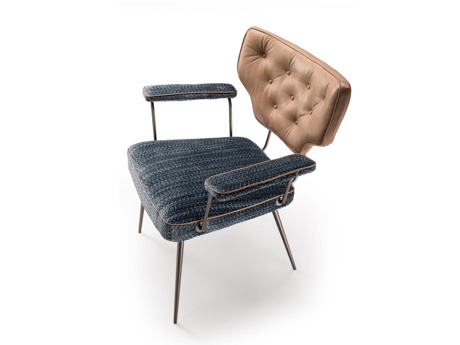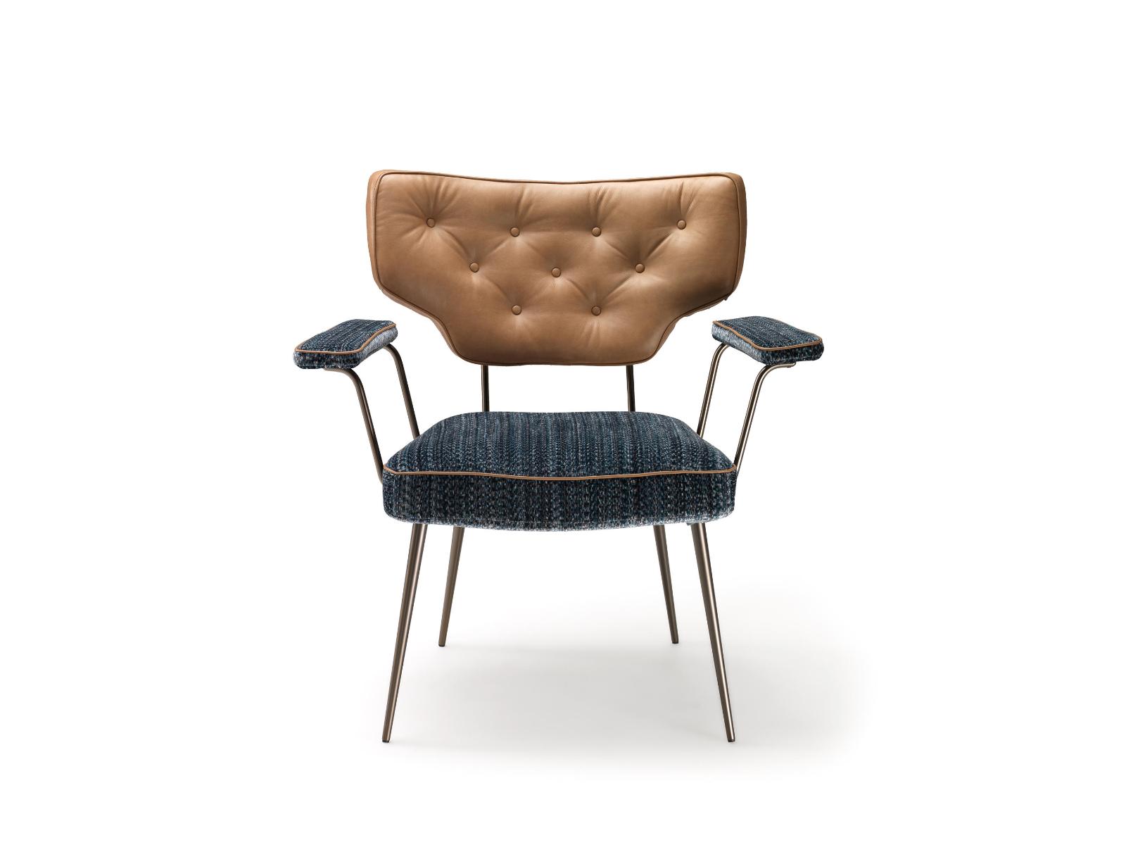 Napůl křeslo a napůl židle, dohromady čistý originál. Křeslo Twiggy má svůj vlastní osobitý retro styl. Kombinace dvou různých potahových materiálů, kůže a látky, ve spojení s odlišnými barvami sedáku a opěrky přidává na výjimečnosti Twiggy.
