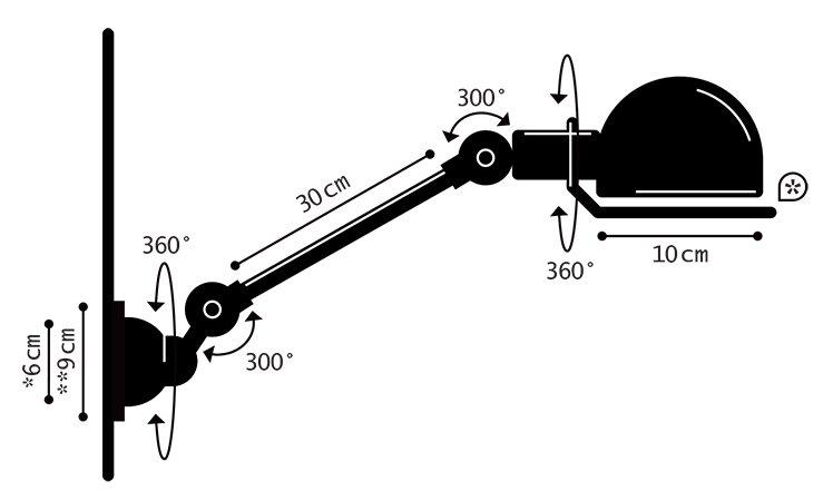 Nástěnná lampa Signal francouzské značky Jieldé je vyrobena z chromované oceli. Díky kloubovému systému lze nastavit polohu, aniž by došlo k poškození kabelu.