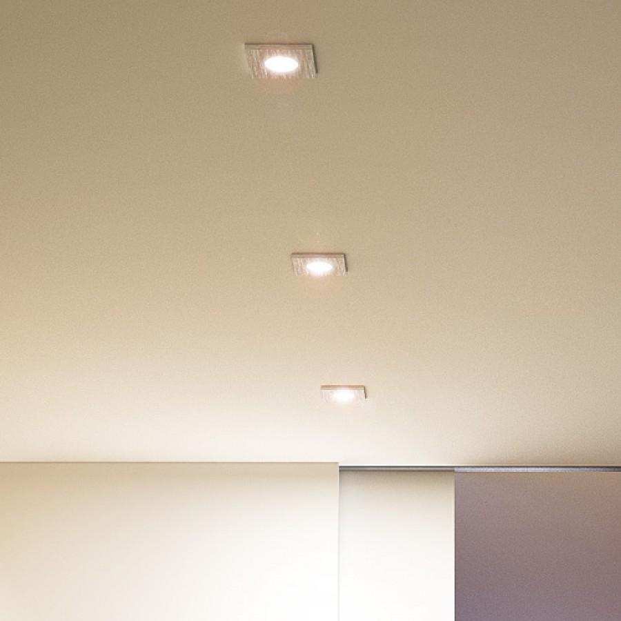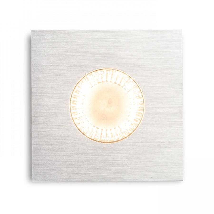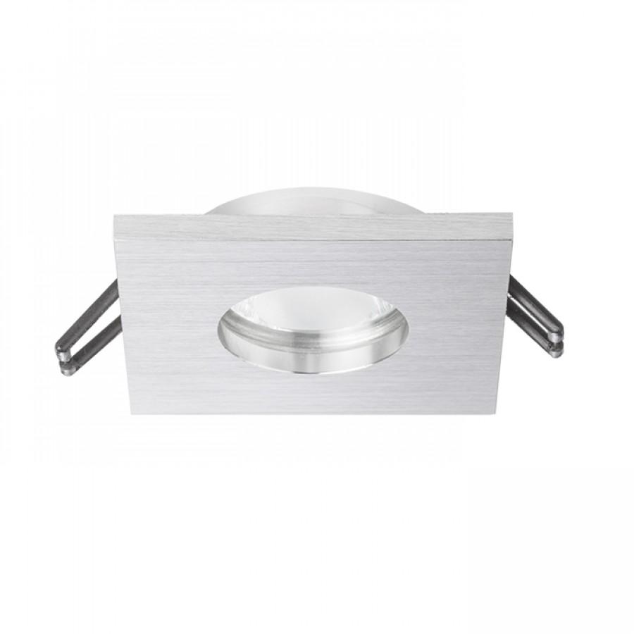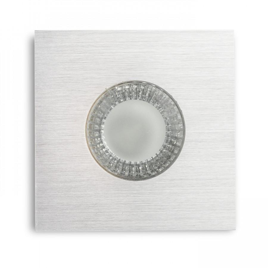 Zápustné svítidlo s rámečkem z česaného hliníku. Průzor svítidla je krytý částečně satinovaným sklem. Vhodné do vlhkého prostředí.